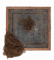 Matratze, Klarsichtfolie übermalt in Rahmen -