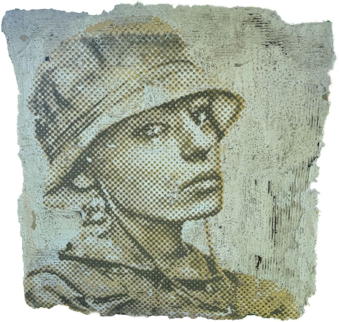 Maria - Fighting for Freedom, ca. 104 x 102 cm, Sculptural Dot Painting auf recyceltem Material